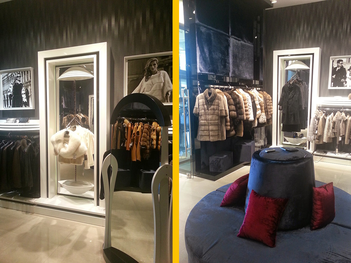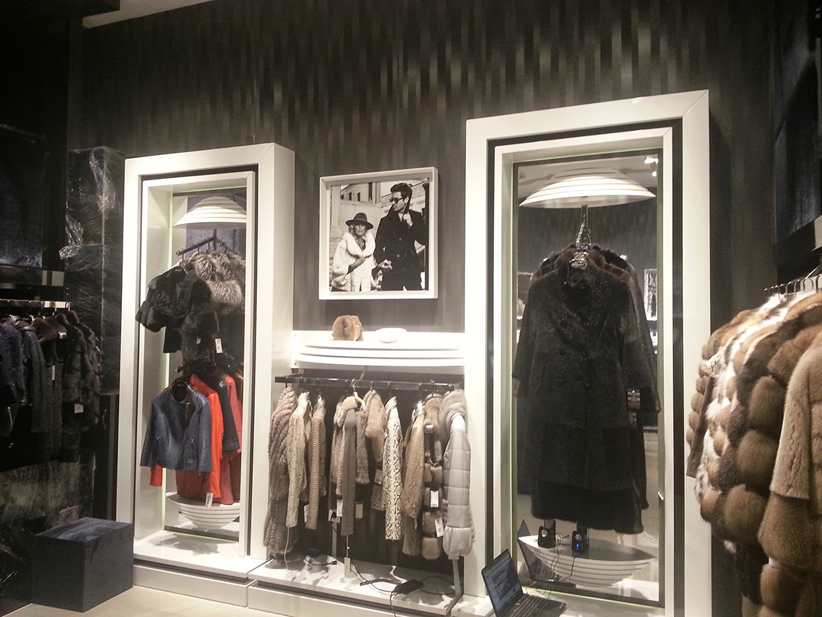 Woux Leather & Fur mağazasına özel olarak tasarladığımız vitrin, sergi ve askı birimleri ile sade fakat dikkat çeken ve fark yaratan bir mağaza konseptini hedefledik.